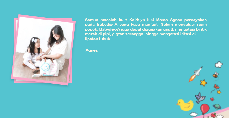She applied the Babydex-A onto his skin every after bath time to protect his skin. The mild formula, easily absorbed cream and the gentle scent made Keagan start his activity pleasantly.